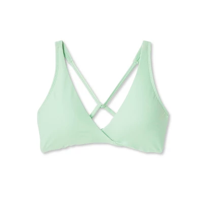 Add summery hues to your swimwear with this Twist-Front Bralette Bikini Top from Shade & Shore™. Made from stretchy fabric for flexible comfort, this bralette bikini top in a soft green color features a twist-front design for an on-trend look. The crisscross straps on the back with a tie closure provide a secure fit, while the removable cups offer customizable coverage. Wear it with a matching, contrasting or printed bikini bottom to complete your swim look.