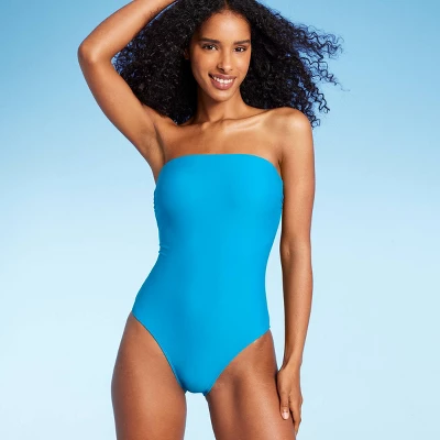 Refresh your swimwear for fun seaside adventures with this Bandeau One-Piece Swimsuit from Shade & Shore™. This one-piece swimsuit is designed to offer medium coverage. Fashioned in a bright blue color, it features a bandeau style with an open back for breezy flair. The stretchy fabric with a touch of spandex keeps you moving comfortably in and out of the water, while the removable cups offer customizable coverage. Plus, the optional shoulder straps can be adjusted to provide a better fit.