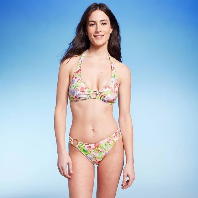 This Multi Floral Print Side Ring High-Leg Cheeky Bikini Bottom from Shade & Shore™ brings colorful, botanical charm to your swimwear collection. It features a cheeky low-rise silhouette with a high-leg design, along with a metal ring detail on one side for a chic touch of shine. The soft, stretchy fabric provides comfortable movement, and the fully lined opaque construction offers plenty of coverage for confident wear. Pair with a matching bikini top for a coordinated set or with other swim tops for an endless array of styling options.