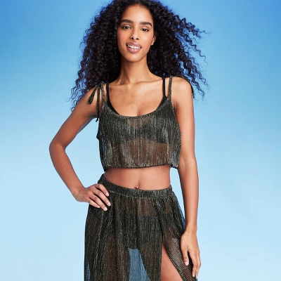 Shine wherever you go wearing the Tie Detail Lurex Cropped Cover-Up Dress from Shade & Shore™. Perfect for wearing over you favorite swimsuit, this black cover-up with tie detail at the shoulders is made from soft fabric with added metallic fiber for a glamorous look. Designed with lurex, this cropped cover-up dress in black makes a beautiful addition to your swimwear collection.